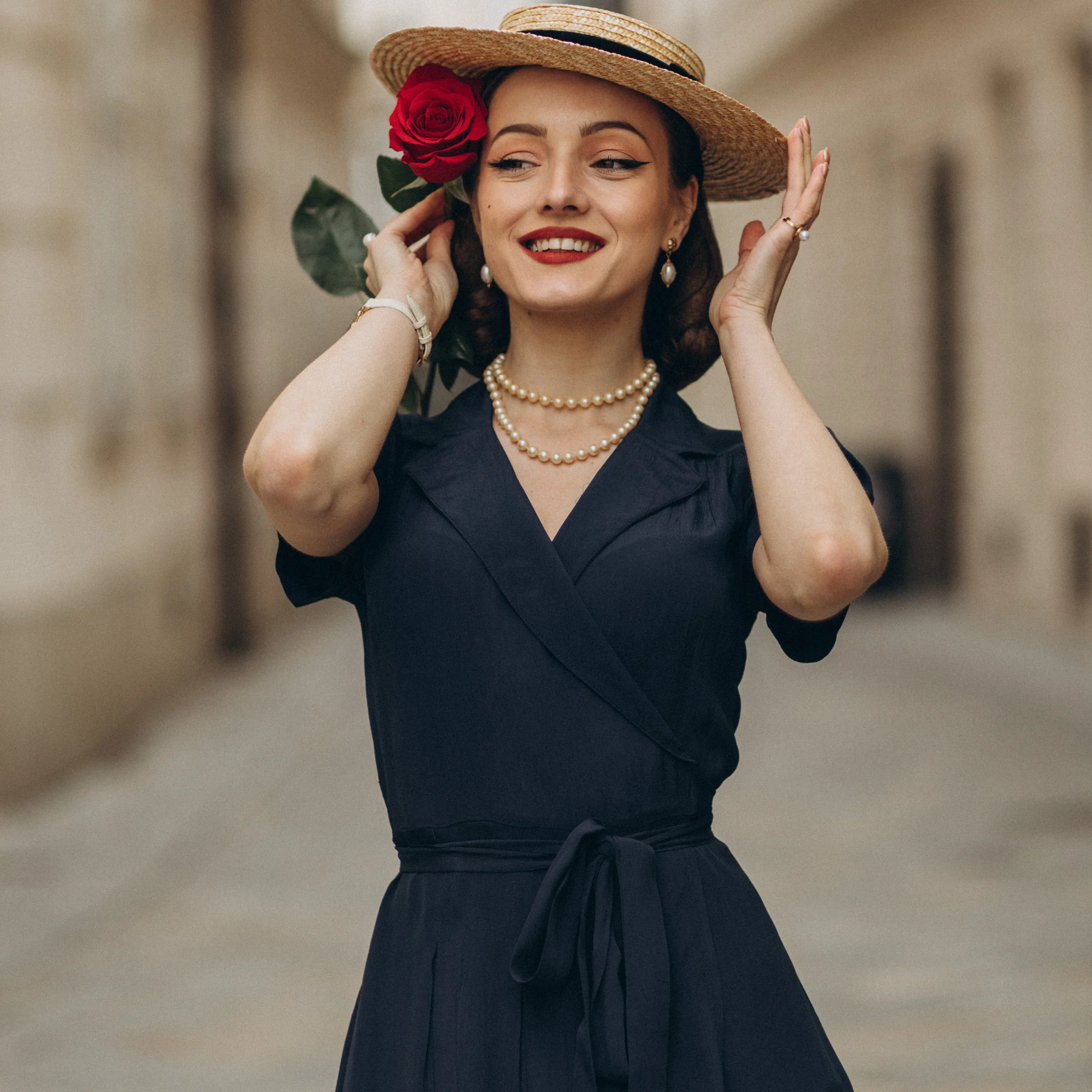 Indulge in the timeless appeal of the iconic 1945 wrap dress, featuring a luxurious tie at the waist for a perfect fit and delicate box pleats at the waistband. From its versatility in petite sizes to becoming a must-have in your maternity wardrobe, the Peggy dress caters to every style.